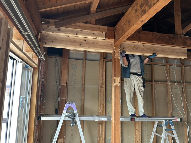 今回は、太い梁や耐震金物で入れて補強していきます。