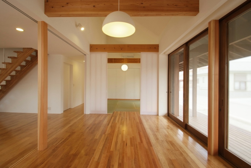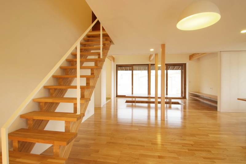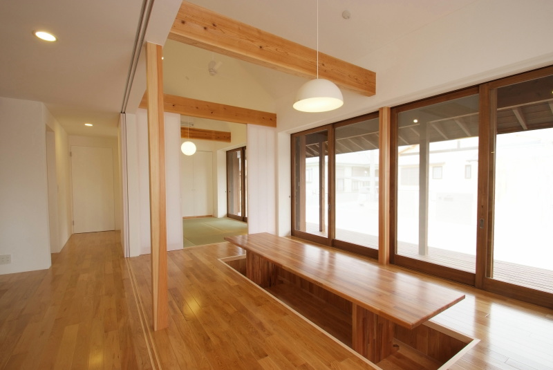 回遊性の高いLDKに家族が集う掘りごたつを備えた、理想の心地よい住空間。